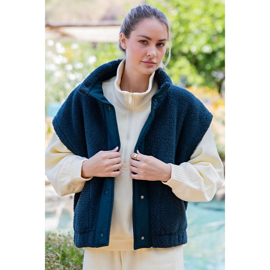 - Snap button-front closure