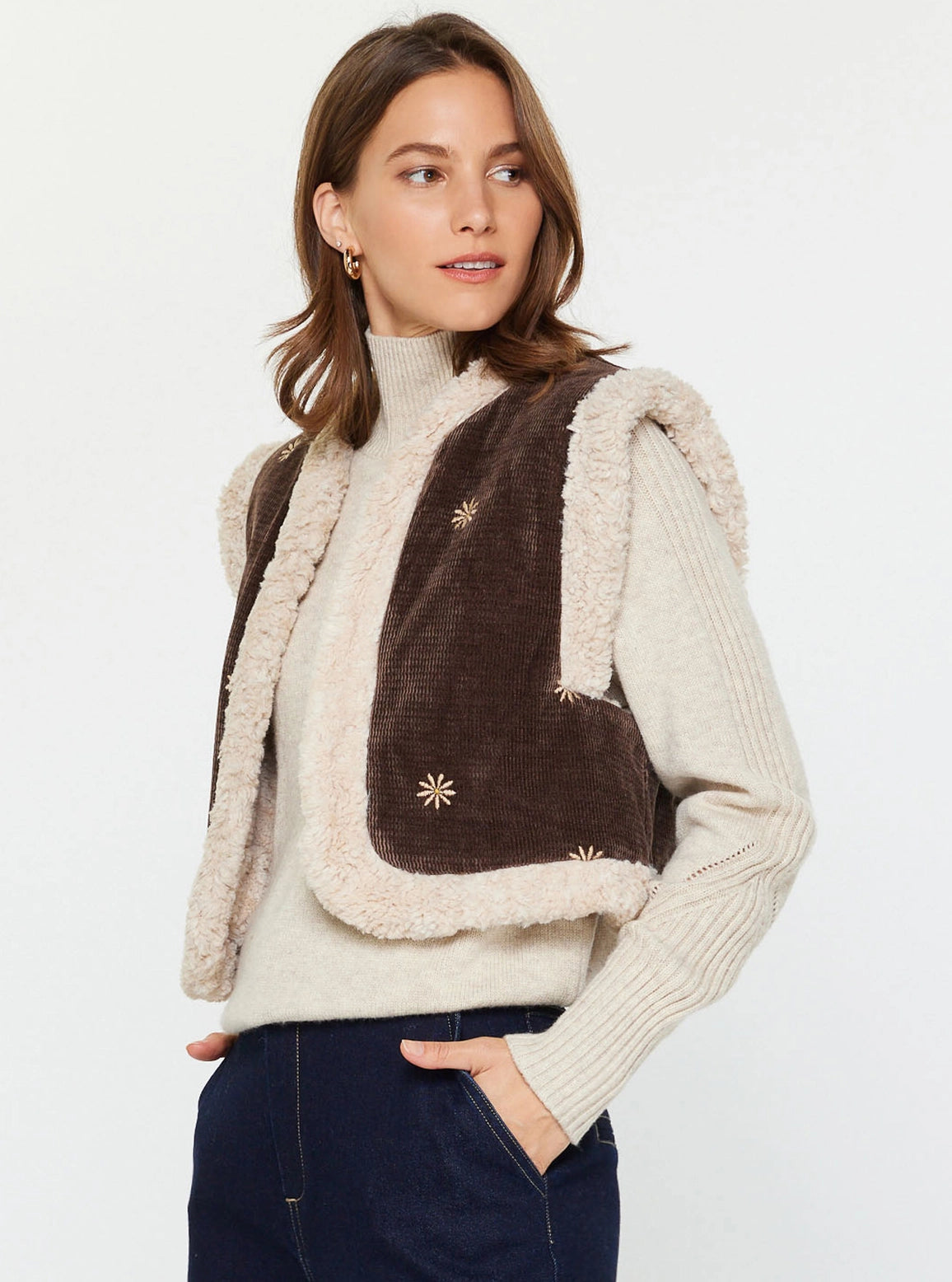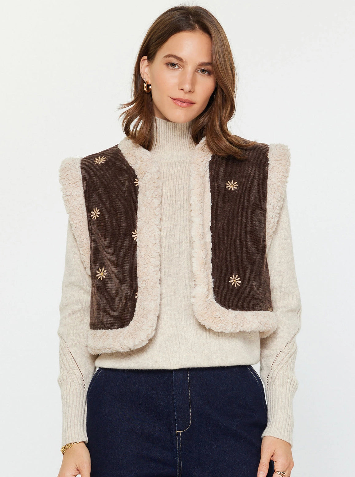 We’re obsessed with this vest! Pair with our Classic Cashmere Sweater and our Hazel jeans to complete the look. Vest is reversible. Fits true to size.